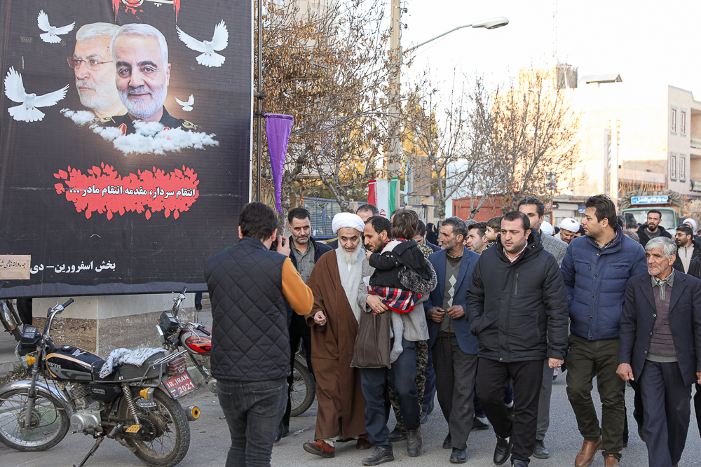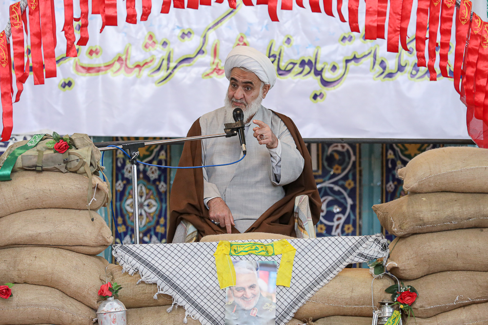 آیت الله عابدینی نماینده ولیفقیه در استان قزوین در سالروز شهادت سردار سلیمانی و هفتمین روز خاکسپاری شهید گمنام در جمع مردم اسفرورین سخنرانی کرد.