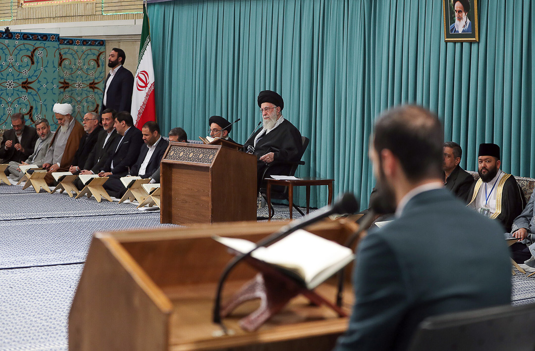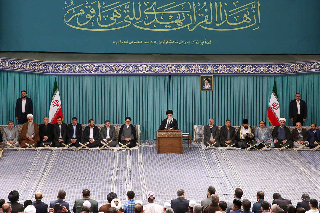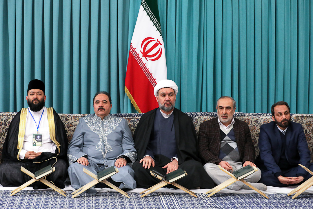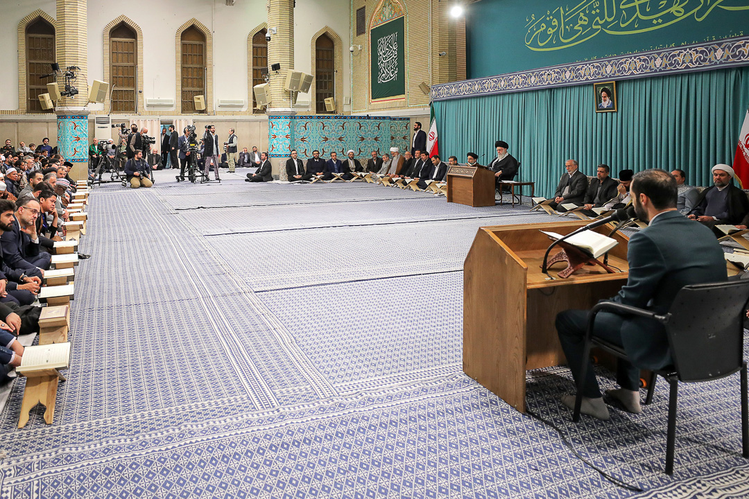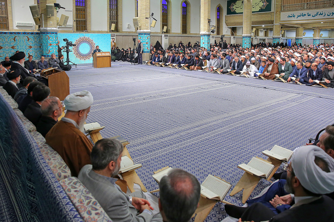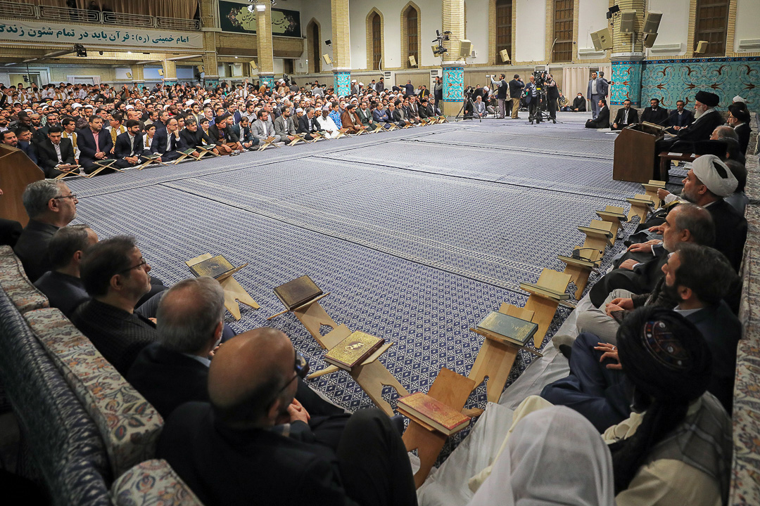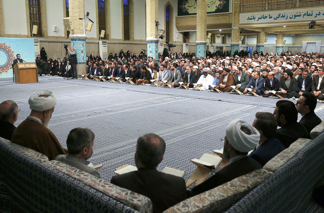 اساتید، قاریان و حافظان برترِ شرکت‌کننده در چهلمین دوره‌ی مسابقات بین‌المللی قرآن کریم جمهوری اسلامی ایران، صبح امروز (پنجشنبه) با حضور در محفل انس با قرآن در حسینیه‌ی امام خمینی(ره) با حضرت آیت‌الله خامنه‌ای (مدظله‌العالی) رهبر معظم انقلاب اسلامی دیدار کردند. آیت‌الله عابدینی نماینده ولی فقیه در استان و امام جمعه قزوین نیز در این دیدار حضور داشت.