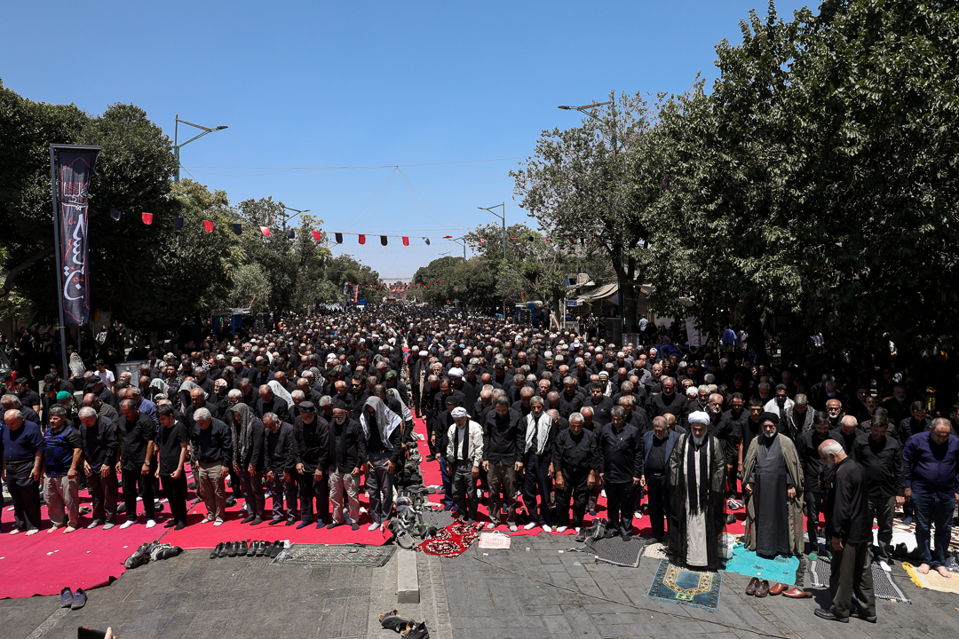 نماز جماعت ظهر عاشورا به امامت آیتالله عابدینی نماینده ولیفقیه در استان و امام جمعه قزوین با حضور گسترده عزاداران حسینی (ع) در خیابان شهدا اقامه شد.