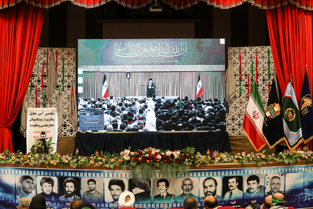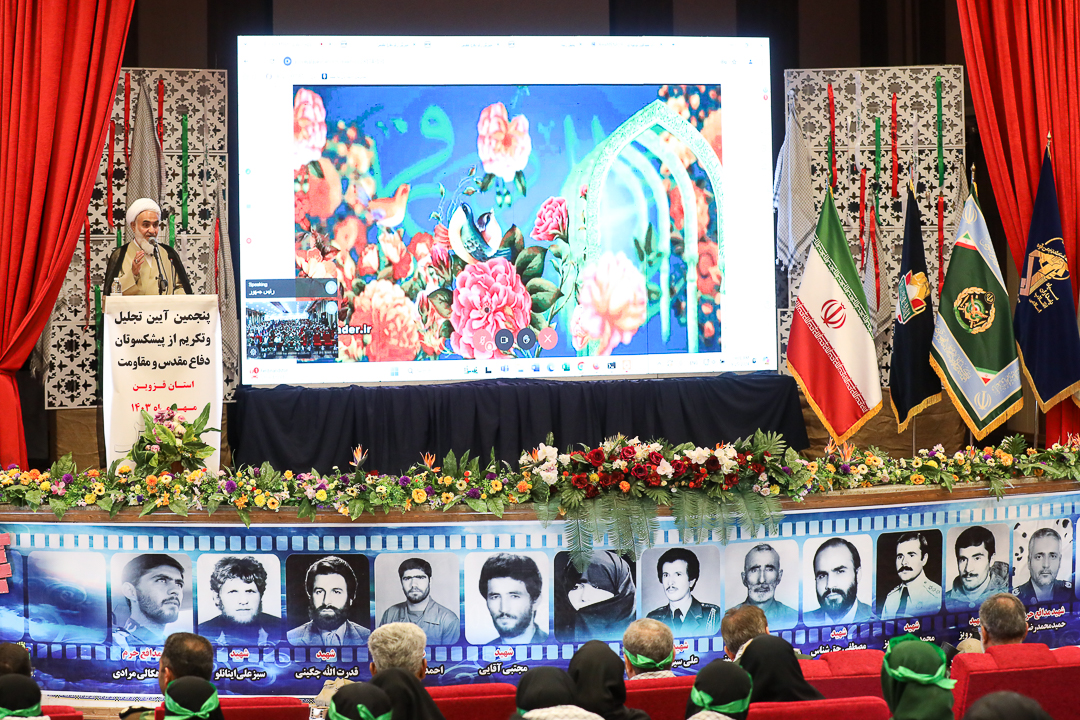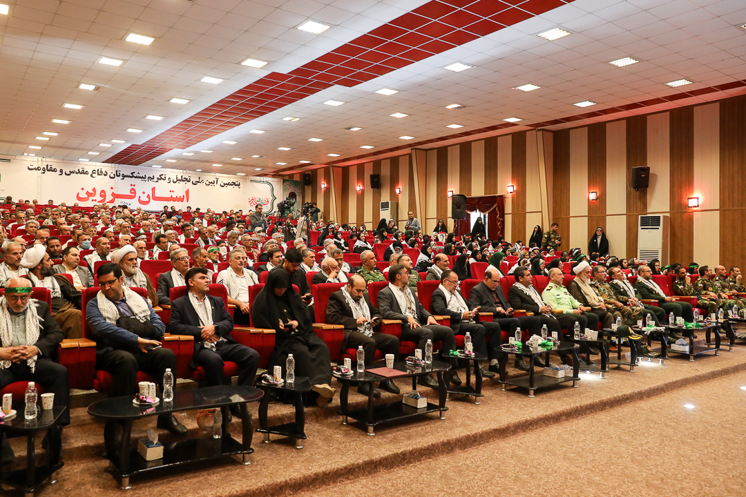 مراسم تجلیل از پیشکسوتان و فعالان دفاع مقدس و مقاومت به همراه با ارتباط تصویری مستقیم با حسینیه امام خمینی (ره) و سخنرانی حضرت آیتالله خامنهای (مدظلهالعالی) رهبر معظم انقلاب اسلامی با حضور نماینده ولیفقیه در استان و امام جمعه قزوین در سالن اجتماعات لشگر 16 زرهی ارتش قزونی برگزار شد.